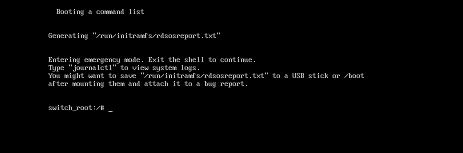 Ctrl+XorF10to boot - Wait for the system to enter the emergency shell prompt